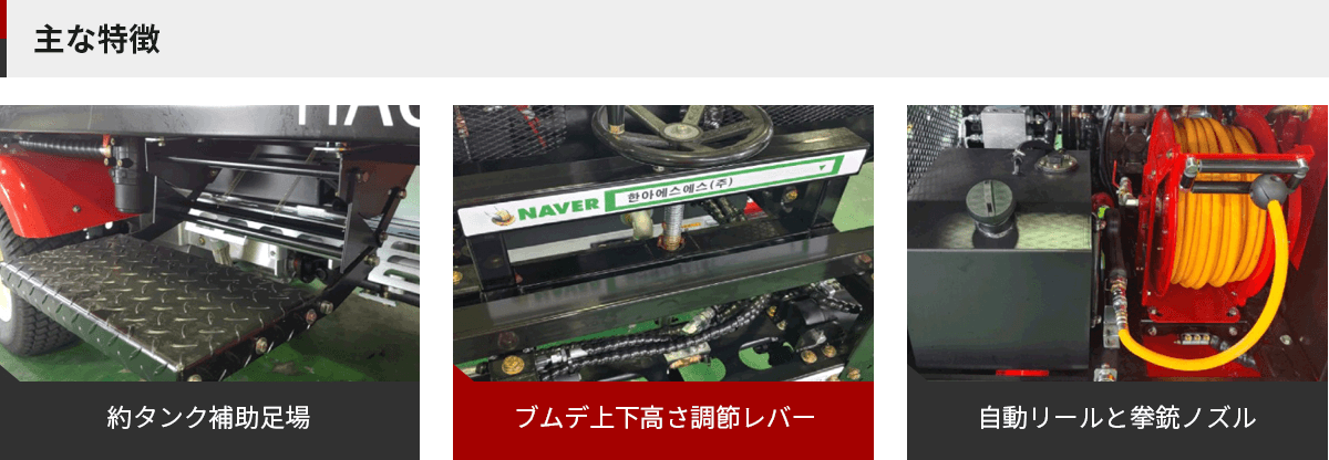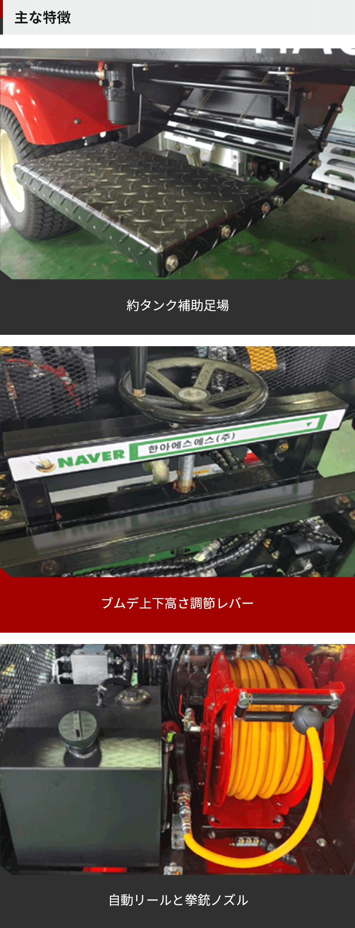 - 4輪操舵の4輪駆動で悪路と傾斜地などで登板能力が卓越