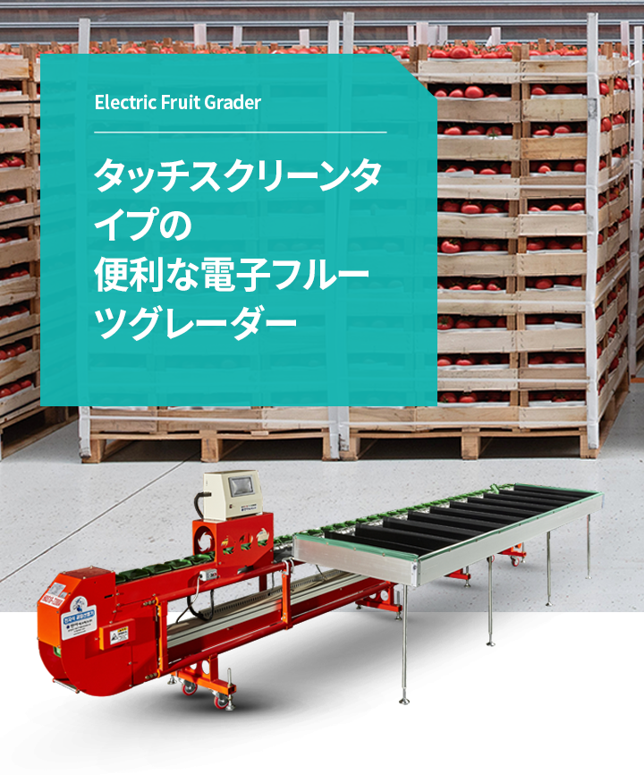 ソフトな排出(フルーツアプサン国内最小)、拡張可能な選別評価(12〜36の評価)、 肉眼センサーオプション付(特/上区分)