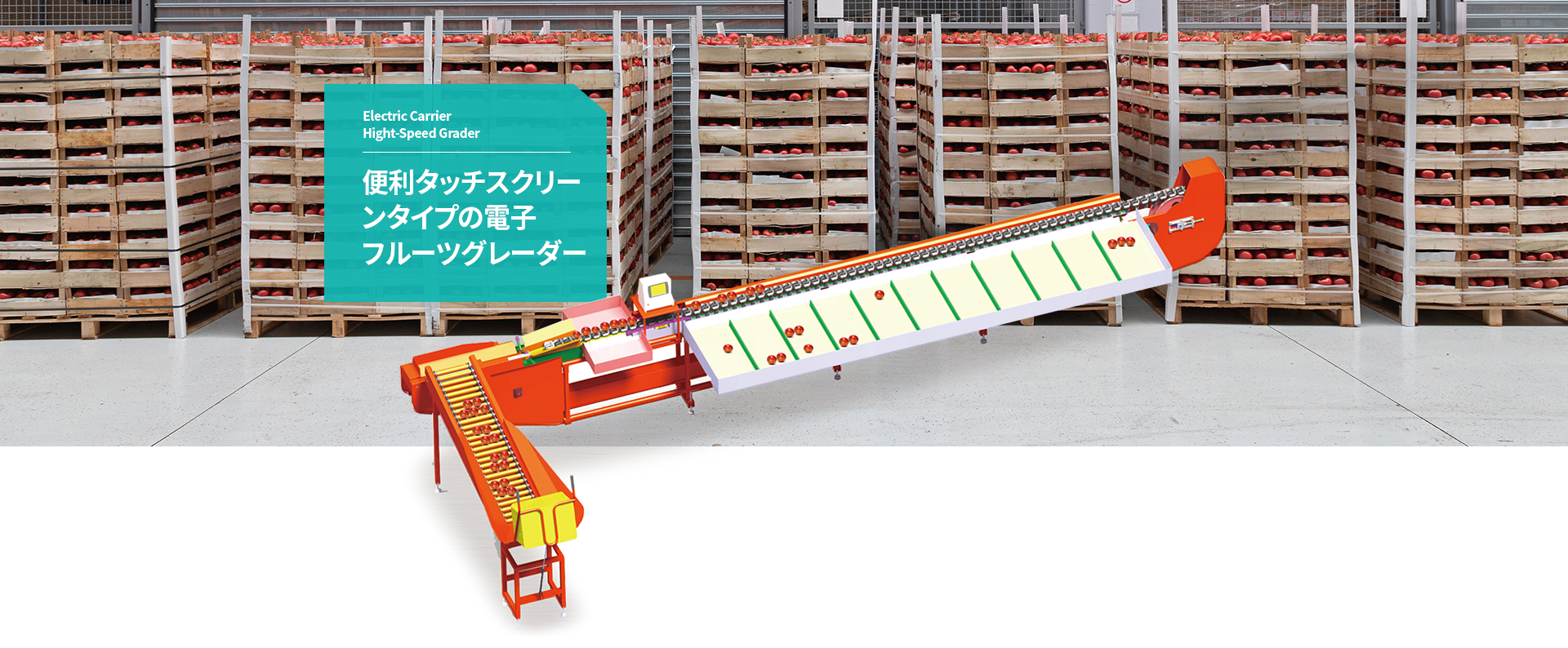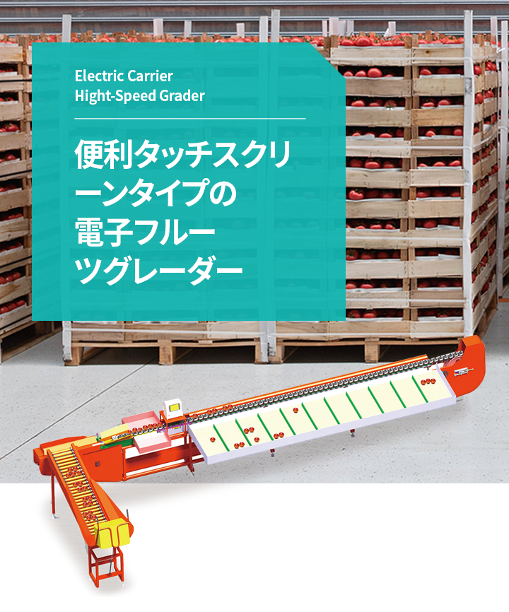 タッチ式コンピュータを採用(誰でも簡単に操作可能)、果樹セッティングで選別可能、 1日の作業量を表示可能