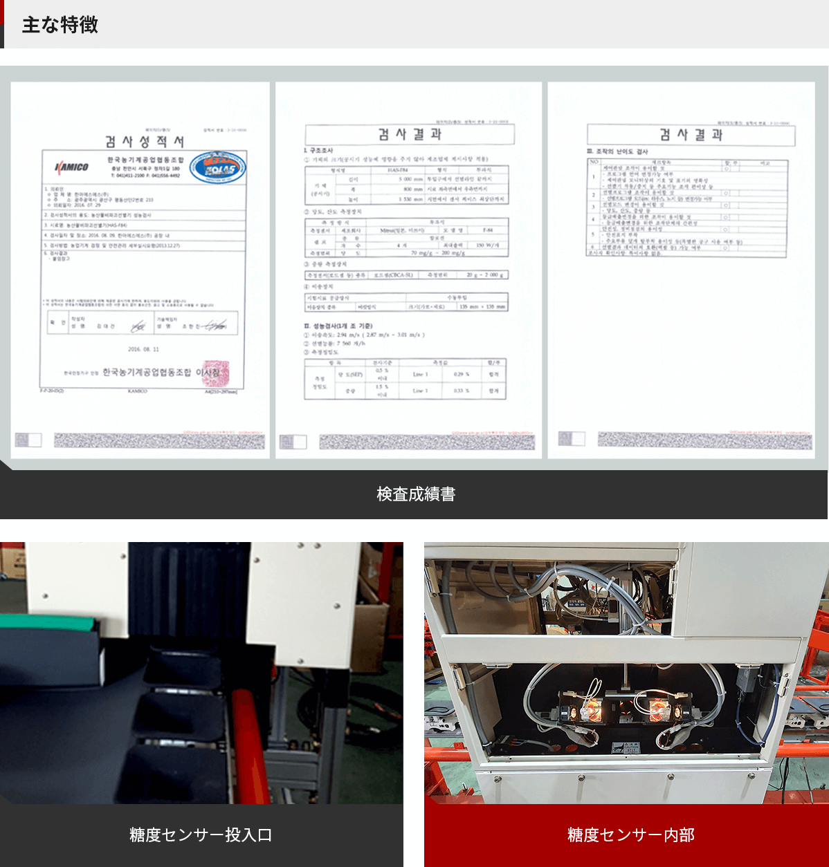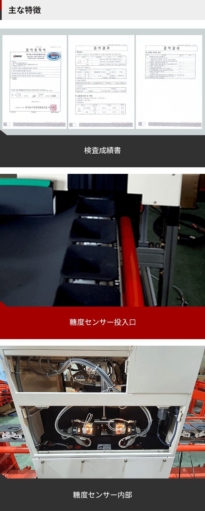 内部測定 : 糖度、酸度、熟度、ミルビョン、褐変、ヘクハル
