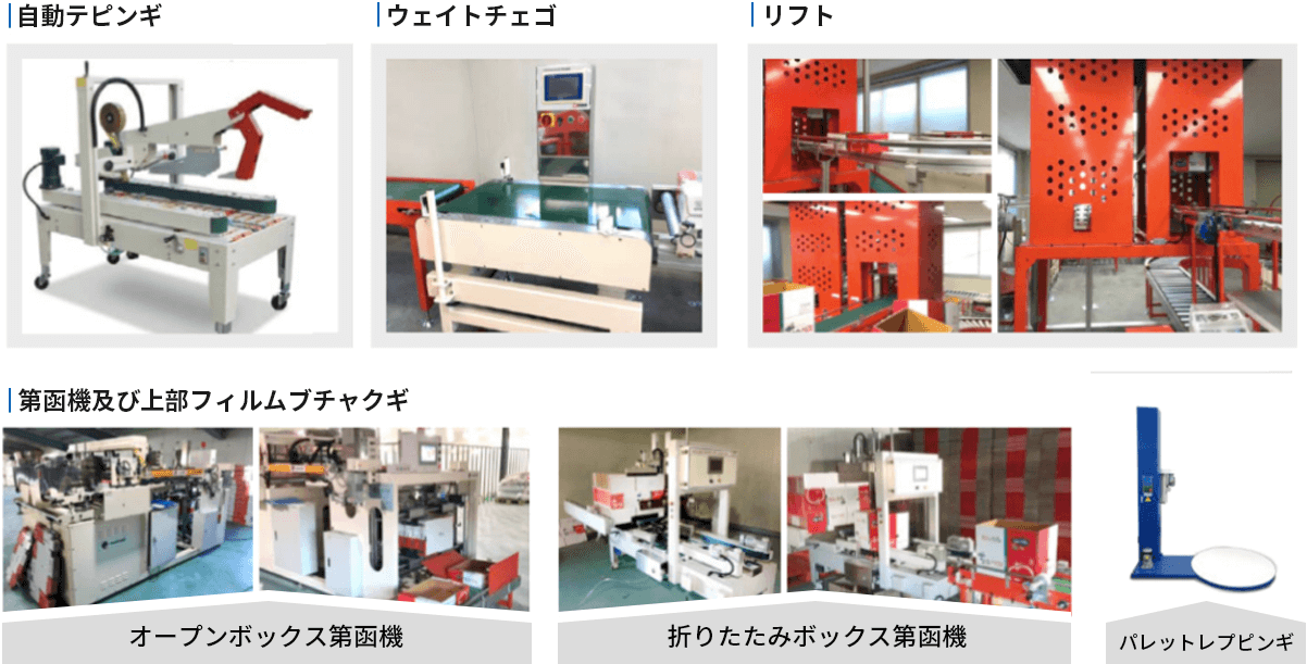OPENBOX第函機、上部フィルムブチャクギ、ジパレットタイれ等