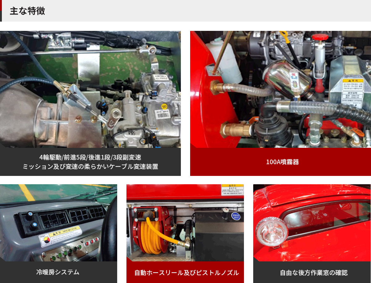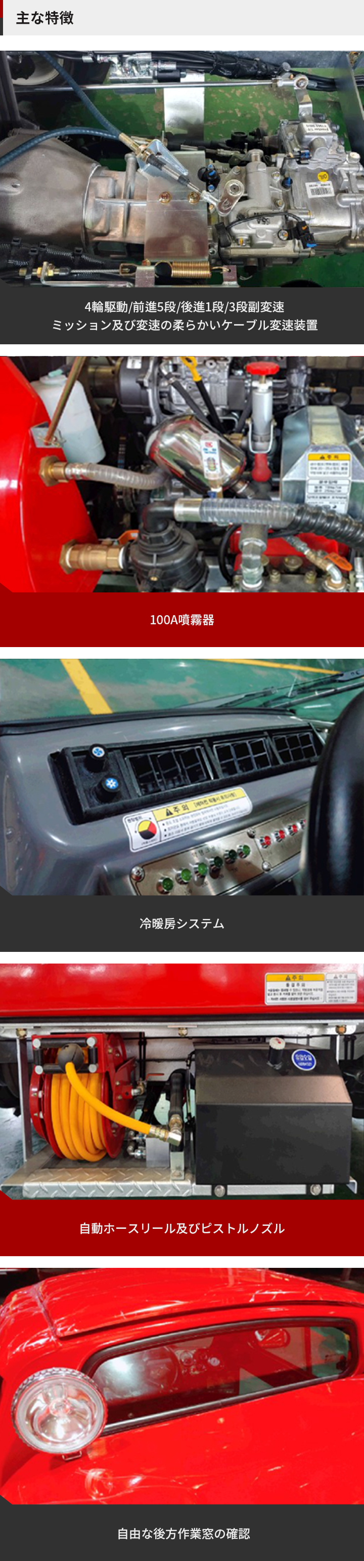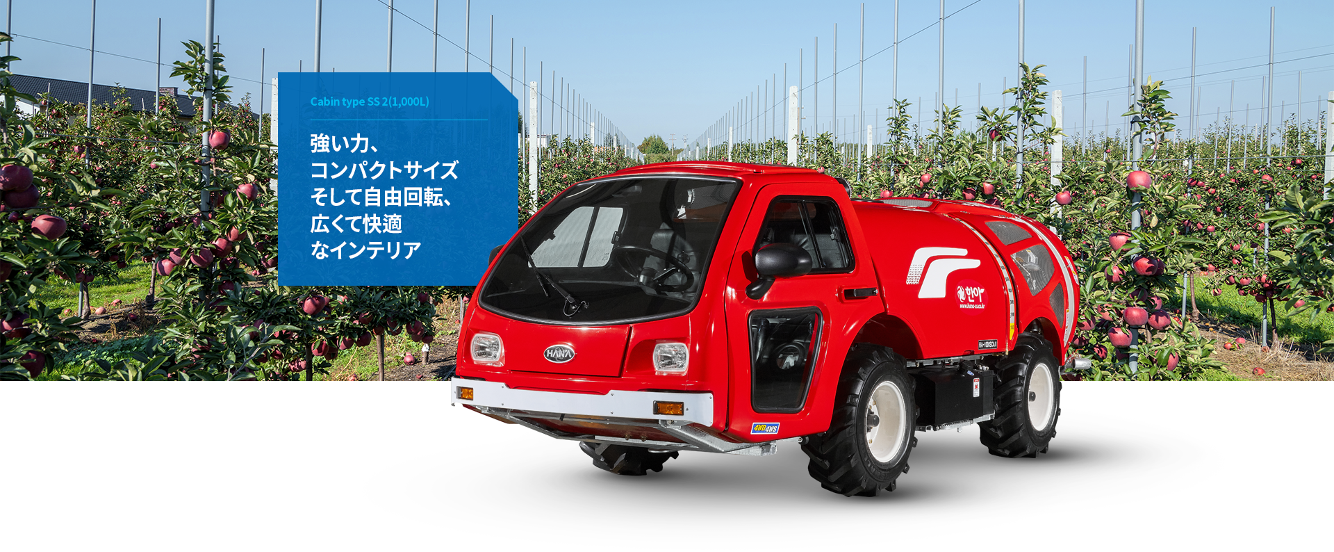 - 65馬力のターボエンジンの強力なパワーと1000L薬液タンク4分割防除