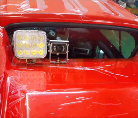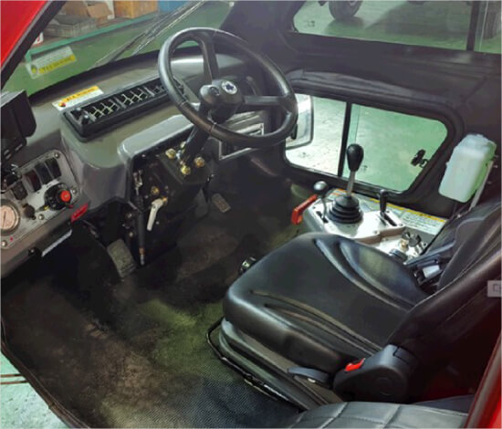 - 狭い作業環境内の運営が可能な後輪操舵方式で最小回転半径