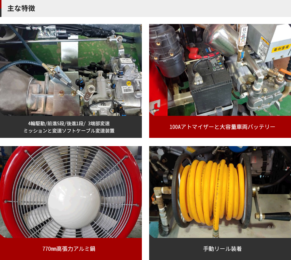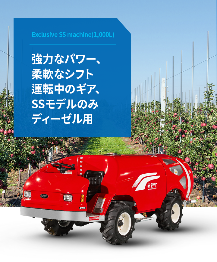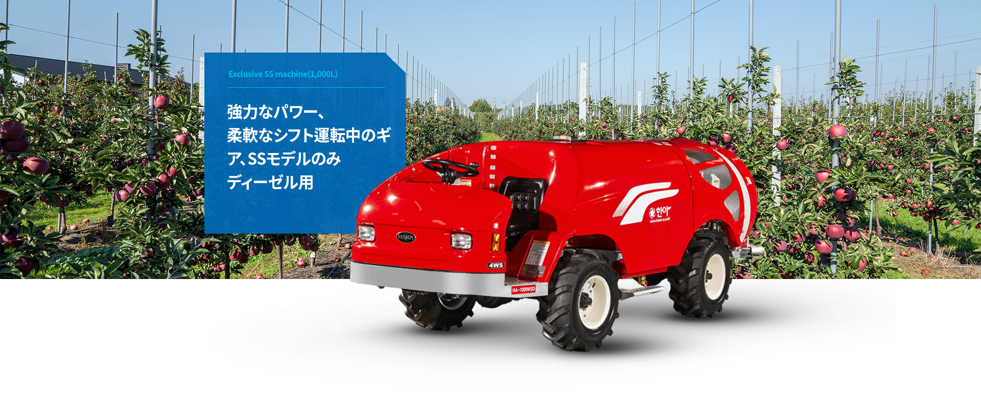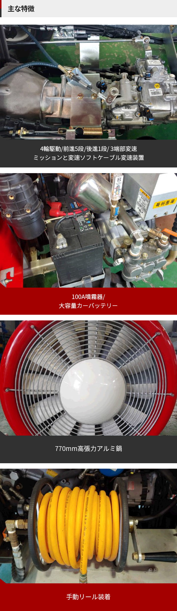 - 65馬力のターボエンジンの強力なパワーと1000L薬液タンク防除