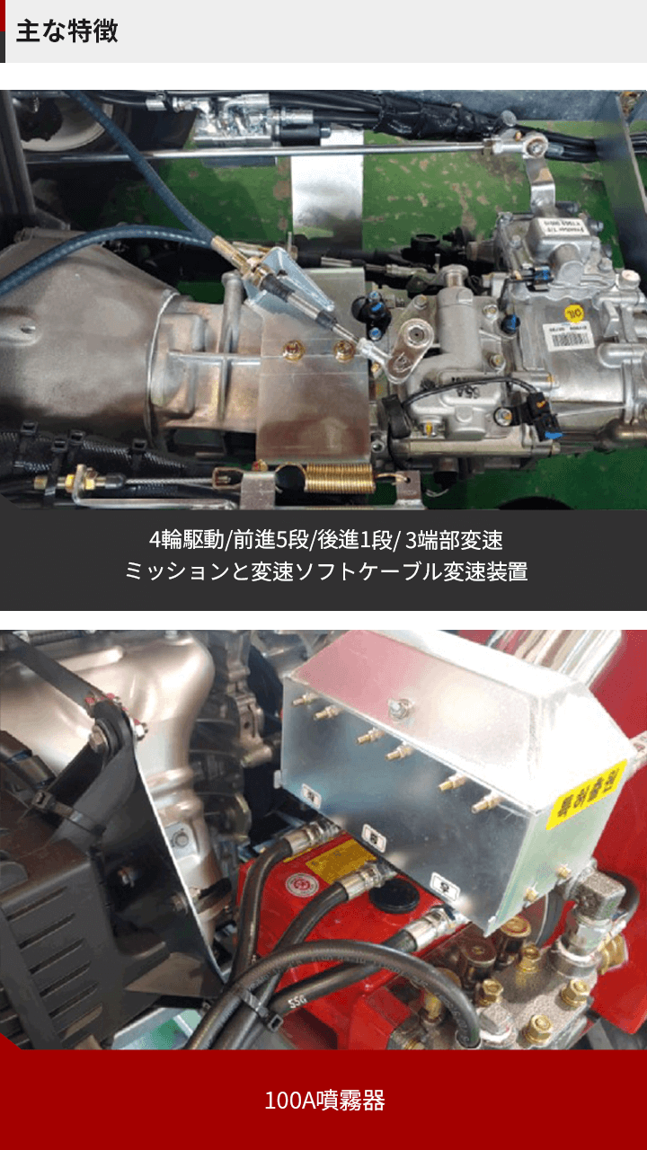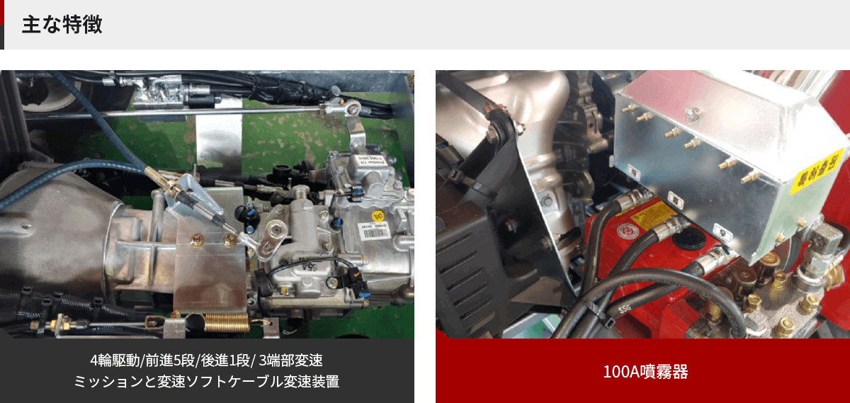 自動車と同じ走行システムで前進5段、後進1段、副変速2段適用
